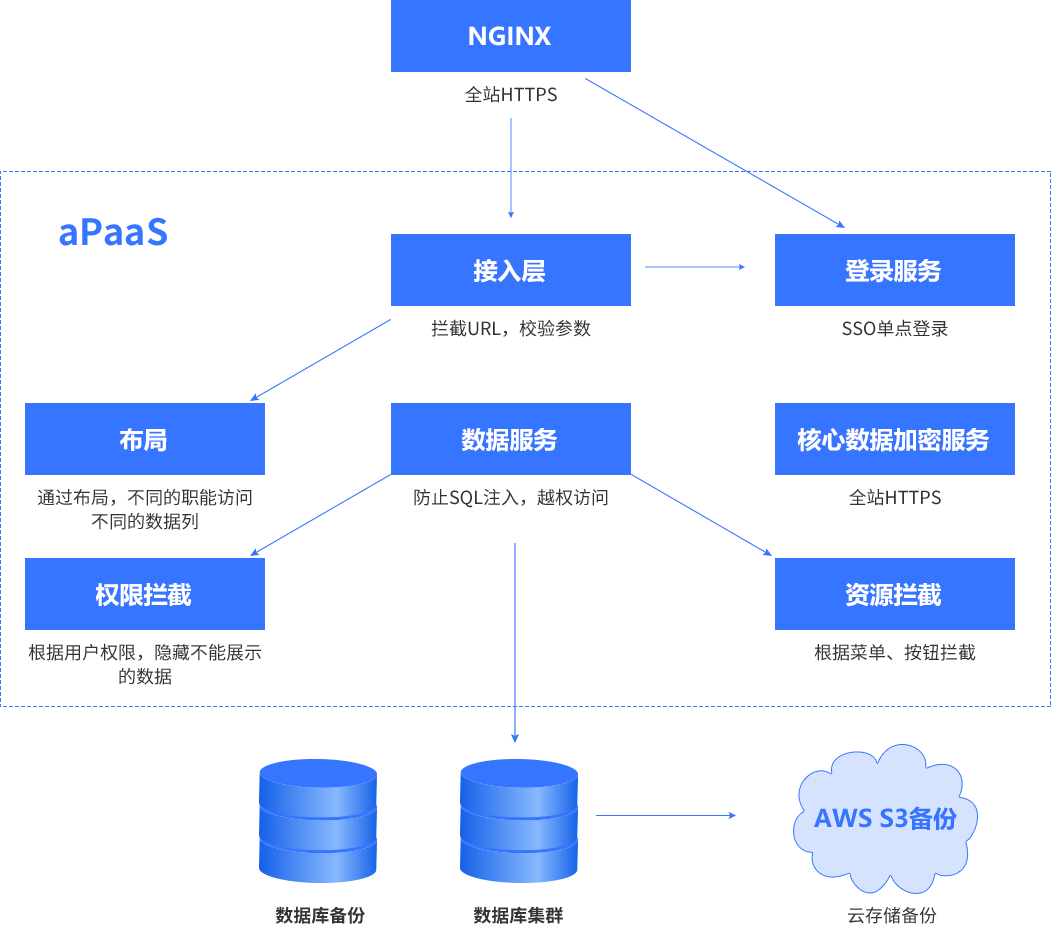 备注:::平台与业务分离,,,,开发运维只运维平台,,业务专家生成的元数据(表/字段/运行逻辑)+业务数据全部以碎片的方式存储在DB中,,,,技术人员无法解读,,,,只有业务专家授权后才能导出元数据+业务数据