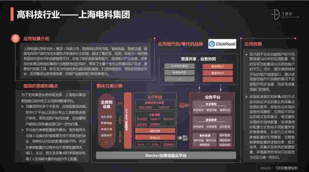 上海电器科学研究所(集团)有限公司,,,,围绕电机系统节能、、、智能电器、、、智能交通、、智能电网用户端共性与关键技术等诸多行业领域,,建成了集研发、、、检测、、、标准为一体的具有国际先进水平的创新服务平台,,,形成了新的创新服务能力,,促进新兴产业发展。。。。但多年的积累造就电科集团行业翘楚地位的同时,,,,带来了大量个性化业务模式和IT诉求,,,需要低代码新工具、、、新方法为内部信息化建设团队赋能,,,,打造持续进步、、、领先的信息化平 台,,支持集团业务持续发展,,,,拓展产品服务能力和竞争能力。。。。