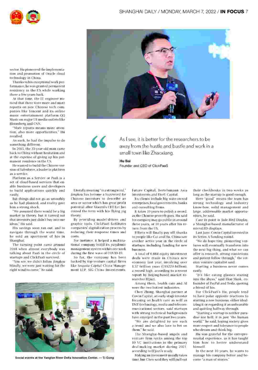 《上海日报》专访钱能钱包创始人、、CEO胡柏,,,探究其创业背后的故事!!!