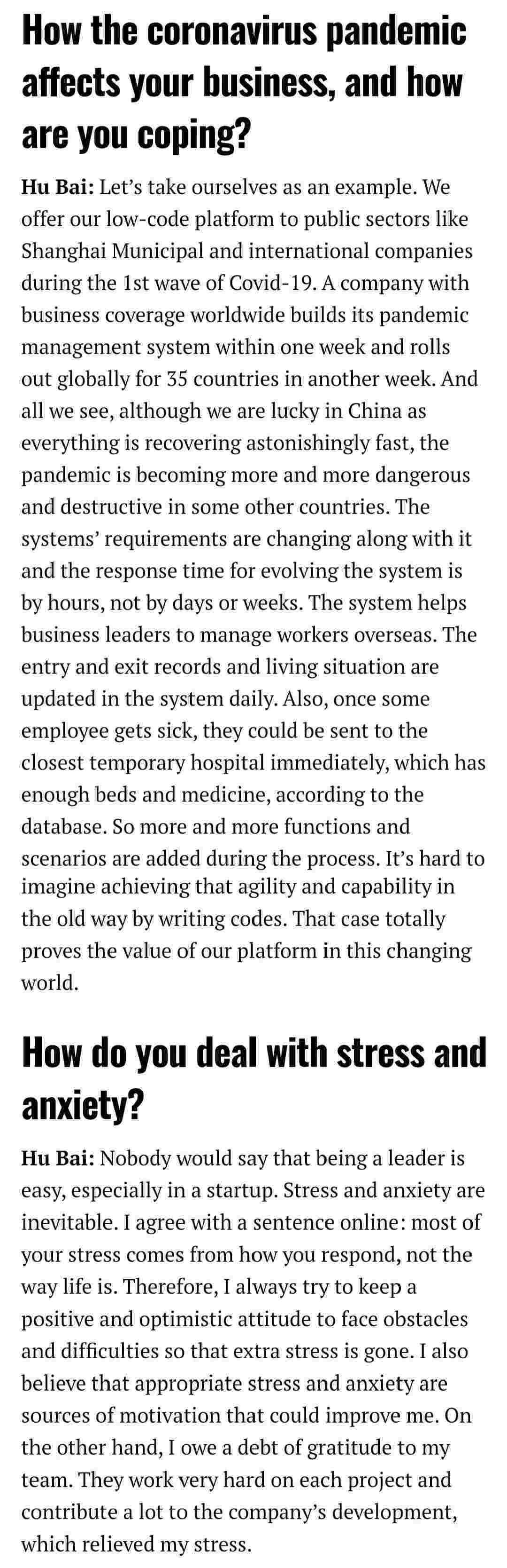 2021年年初,,,爱湃斯科技CEO胡柏受邀接受法媒Startup.info的专访,,,,与Startup info的读者分享了自己的创业经历、、以及低代码平台钱能钱包的创新之处。。