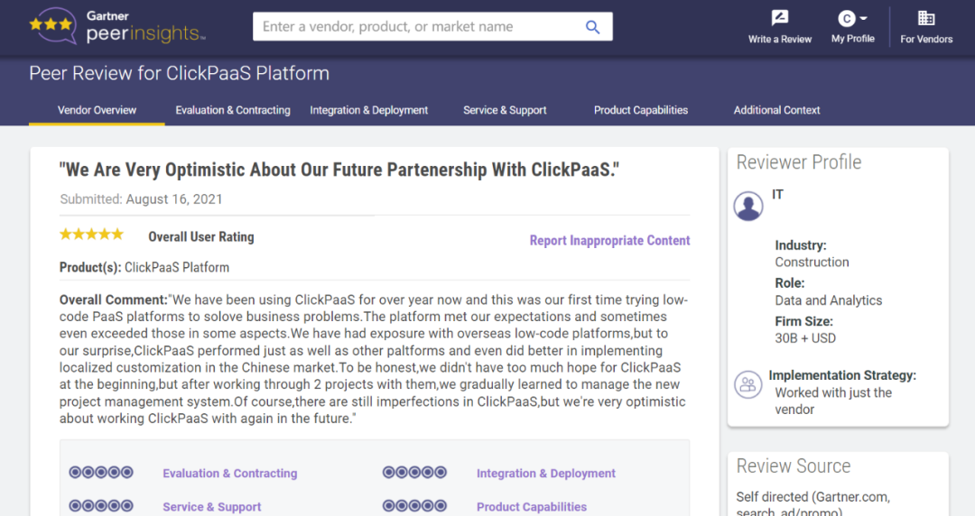 Tips:::【Peer Insights】——用户对企业IT产品和服务发布真实评价的平台。。。目前已有355个市场,,,,255,000条经过验证的评价。。。每一条评价Gartner会针对参评企业营收规模及参评人员信息做验证、、、评价内容做多维核实。。。